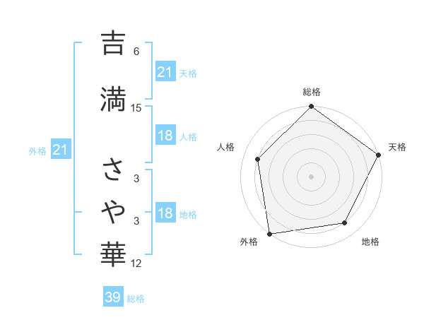 吉満 さや華さんを姓名の画数から五運を鑑定