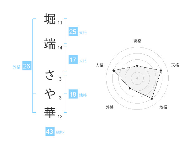 堀端 さや華さんを姓名の画数から五運を鑑定
