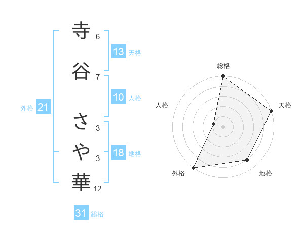 寺谷 さや華さんの外格は21画の5点!