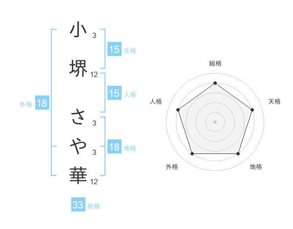 小堺 さや華さんの総格は33画の4点!