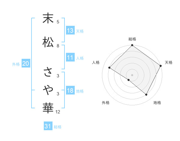 末松 さや華さんの天格は13画の5点!