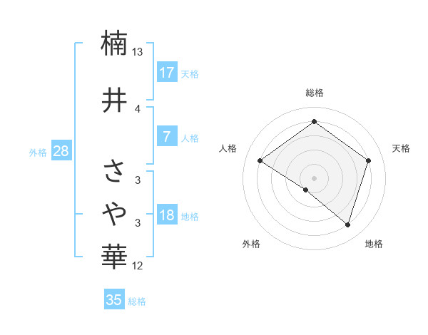 楠井 さや華さんを姓名の画数から五運を鑑定