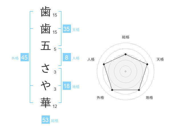 歯歯五 さや華さんの総格は53画の3点!