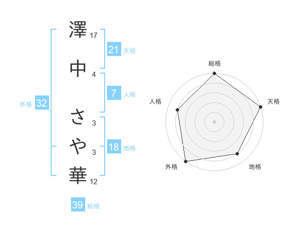 澤中 さや華さんの総格は39画の5点!