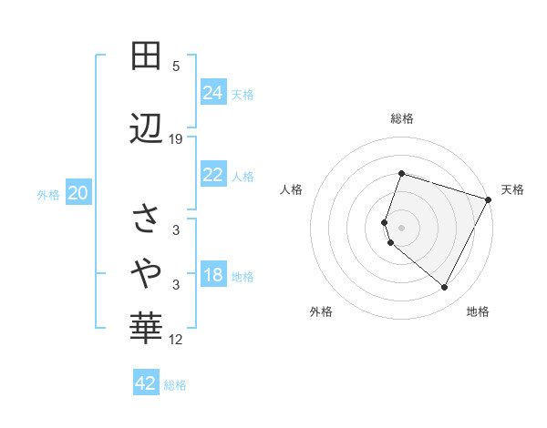 田辺 さや華さんを姓名の画数から五運を鑑定