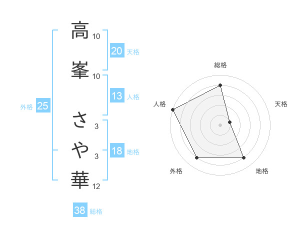 高峯 さや華さんの天格は20画の1点!