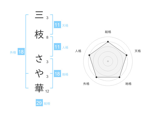 三枝 さや華さんを姓名の画数から五運を鑑定
