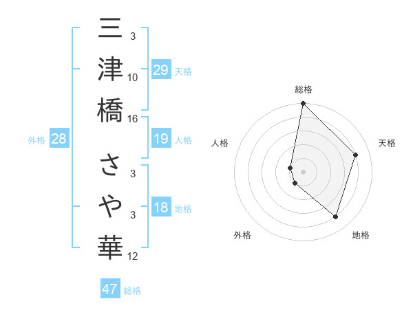 三津橋 さや華さんを姓名の画数から五運を鑑定