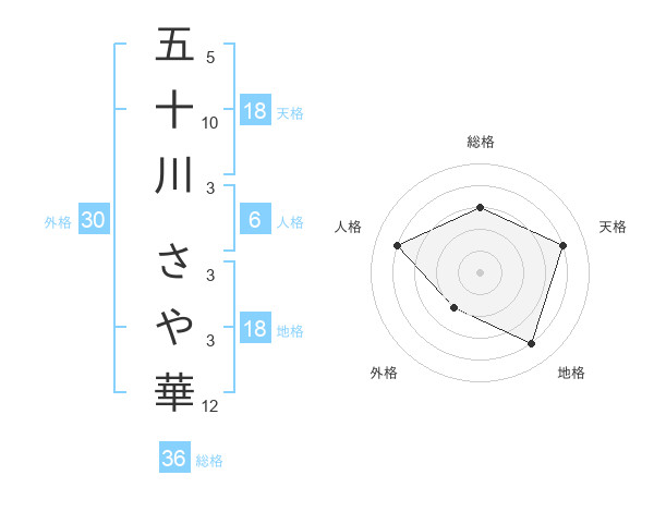五十川 さや華さんを姓名の画数から五運を鑑定