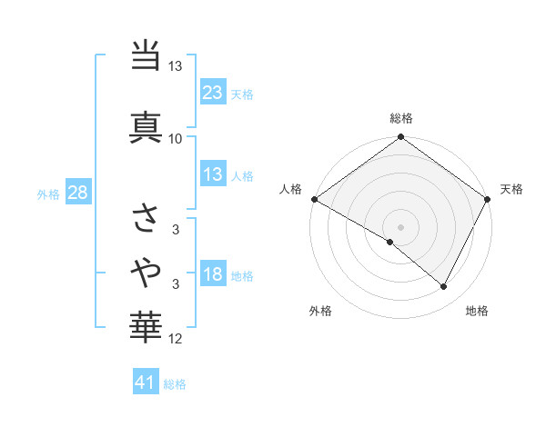 当真 さや華さんの天格は23画の5点!
