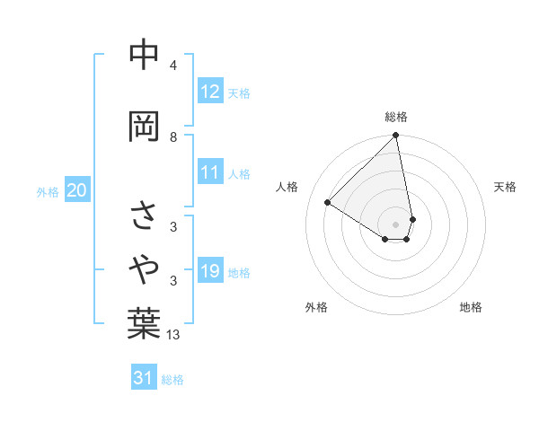中岡 さや葉さんを姓名の画数から五運を鑑定