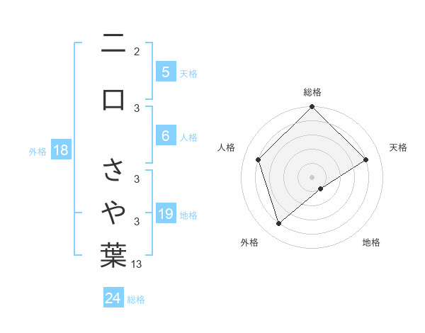 二口 さや葉さんの外格は18画の4点!