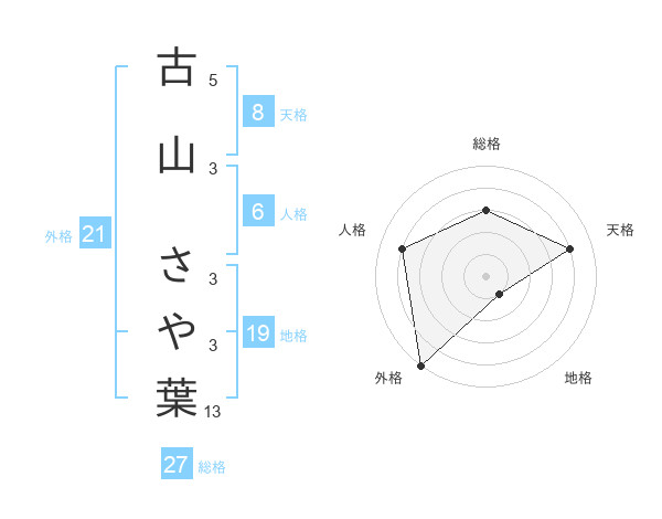 古山 さや葉さんを姓名の画数から五運を鑑定