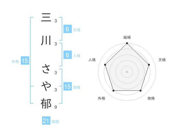 三川 さや郁さんを姓名の画数から五運を鑑定