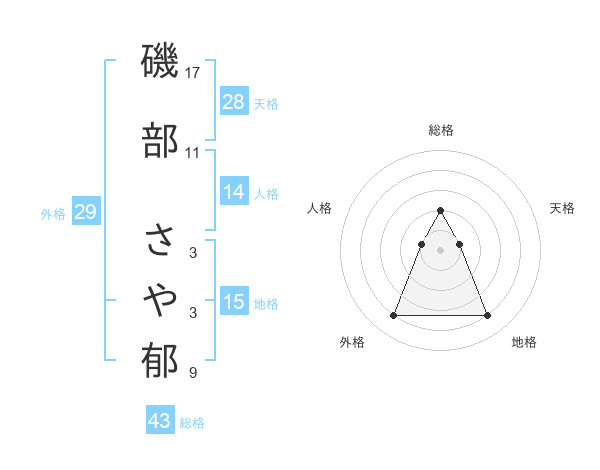 磯部 さや郁さんを姓名の画数から五運を鑑定