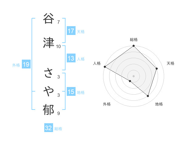 谷津 さや郁さんを姓名の画数から五運を鑑定