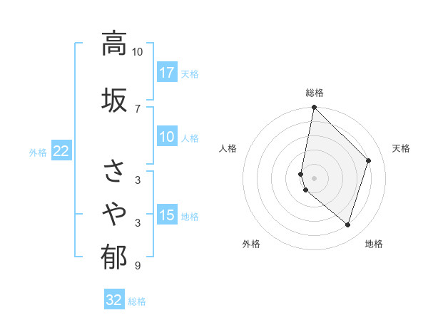 高坂 さや郁さんの総格は32画の5点!