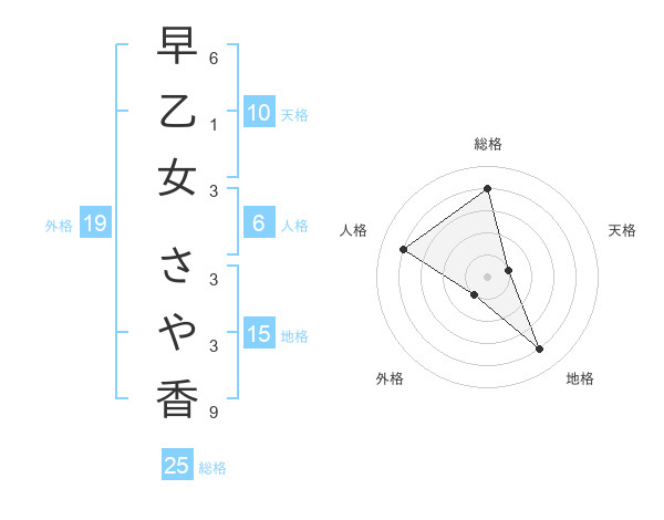 早乙女 さや香さんを姓名の画数から五運を鑑定