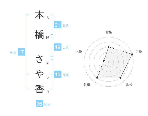 本橋 さや香さんを姓名の画数から五運を鑑定