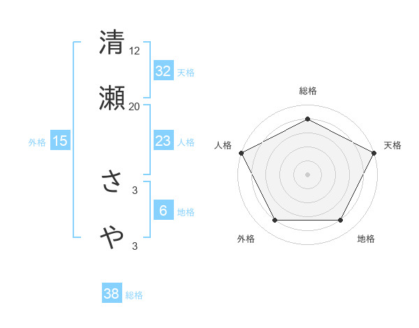 清瀬 さやさんの総格は38画の4点!