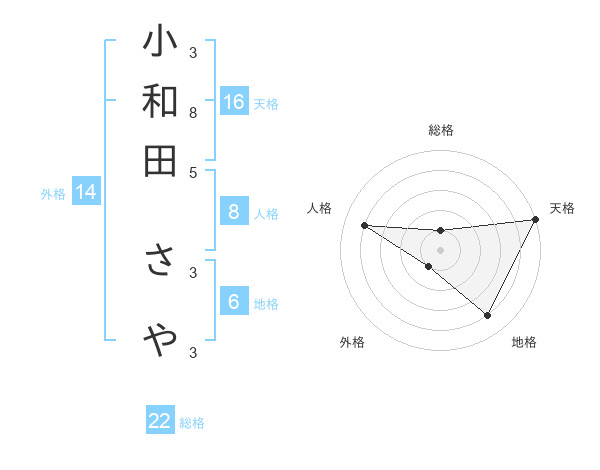 小和田 さやさんの総格は22画の1点!