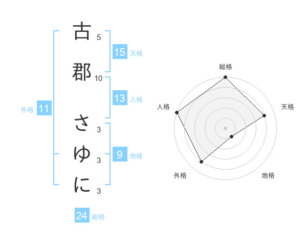 古郡 さゆにさんの総格は24画の5点!