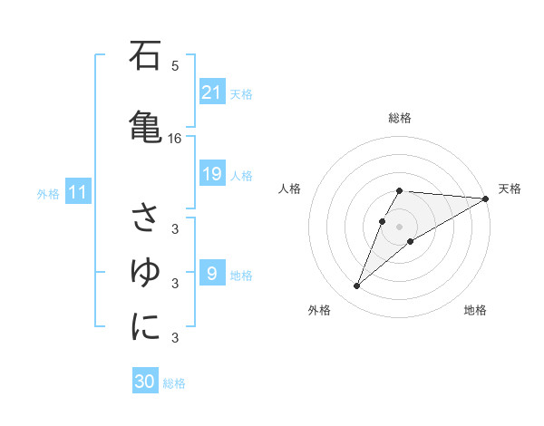 石亀 さゆにさんを姓名の画数から五運を鑑定