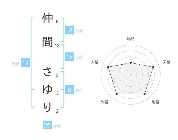 仲間 さゆりさんの天格は18画の4点!