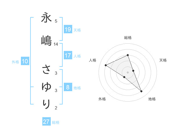 永嶋 さゆりさんを姓名の画数から五運を鑑定
