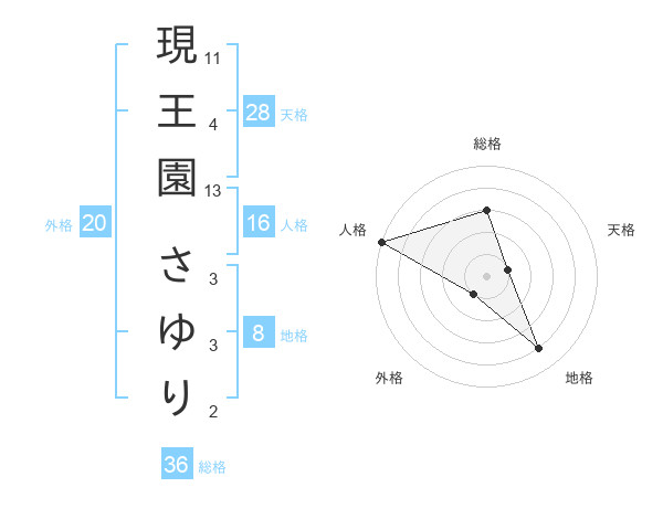 現王園 さゆりさんの天格は28画の1点!