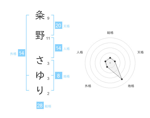 粂野 さゆりさんの天格は20画の1点!