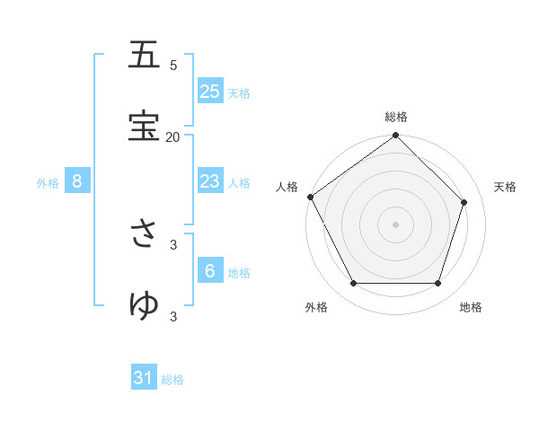 五宝 さゆさんを姓名の画数から五運を鑑定
