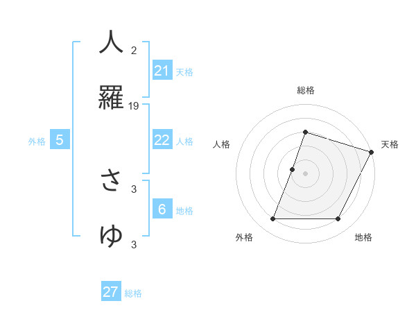 人羅 さゆさんの総格は27画の3点!