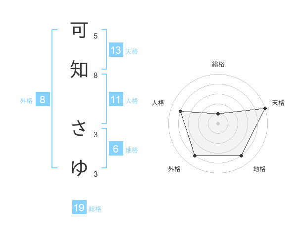 可知 さゆさんの天格は13画の5点!