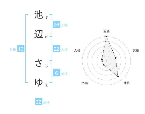 池辺 さゆさんの天格は26画の2点!