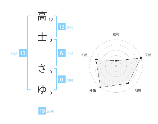 高士 さゆさんの天格は13画の5点!