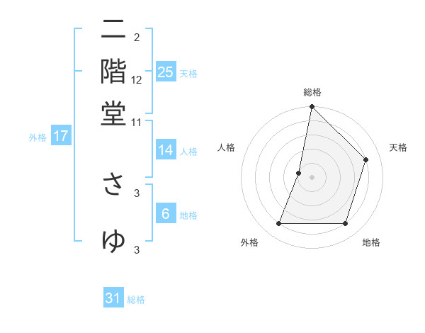 二階堂 さゆさんの天格は25画の4点!