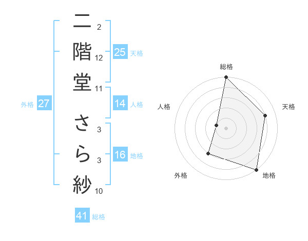 二階堂 さら紗さんの天格は25画の4点!