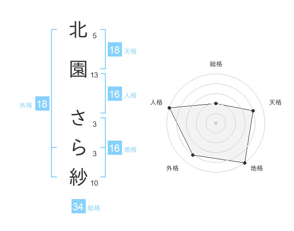 北園 さら紗さんを姓名の画数から五運を鑑定