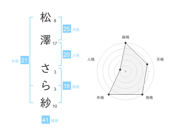 松澤 さら紗さんを姓名の画数から五運を鑑定