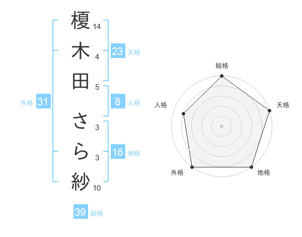 榎木田 さら紗さんを姓名の画数から五運を鑑定