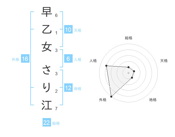 早乙女 さり江さんを姓名の画数から五運を鑑定