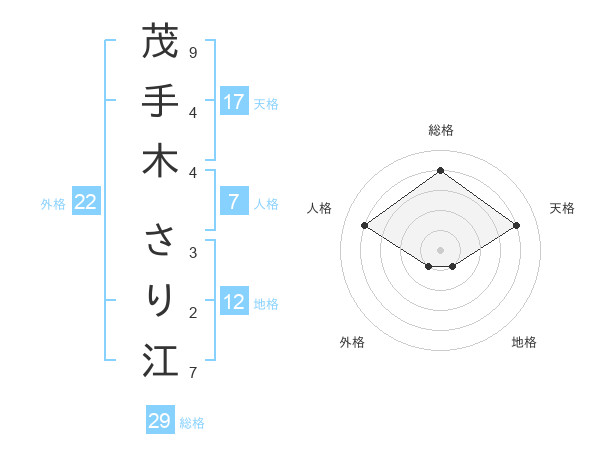 茂手木 さり江さんを姓名の画数から五運を鑑定