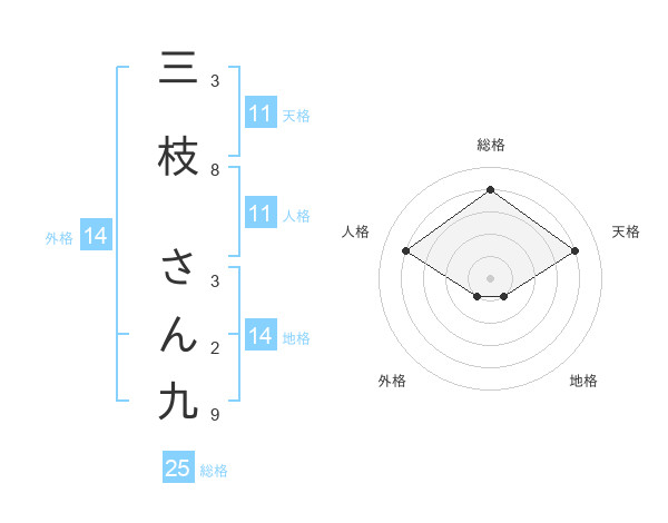 三枝 さん九さんを姓名の画数から五運を鑑定