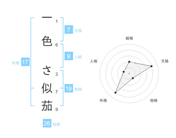 一色 さ似茄さんの総格は26画の2点!