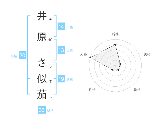 井原 さ似茄さんを姓名の画数から五運を鑑定