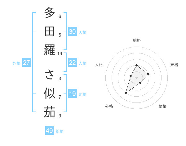 多田羅 さ似茄さんを姓名の画数から五運を鑑定