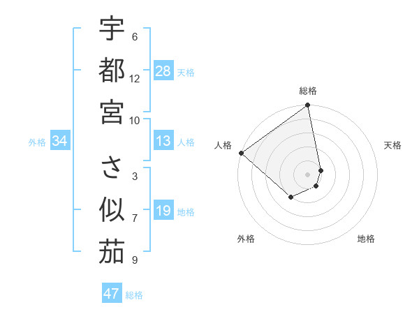宇都宮 さ似茄さんを姓名の画数から五運を鑑定