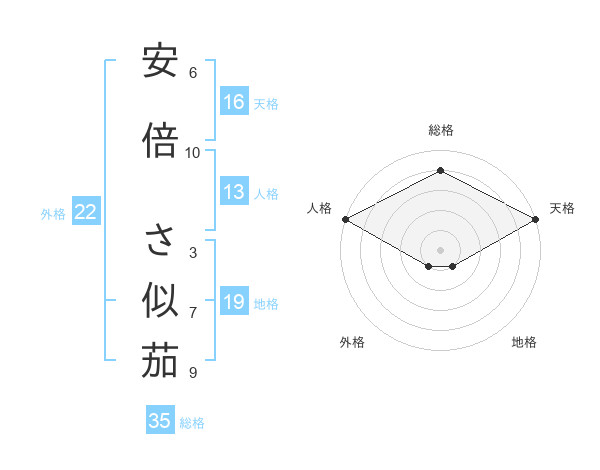 安倍 さ似茄さんを姓名の画数から五運を鑑定