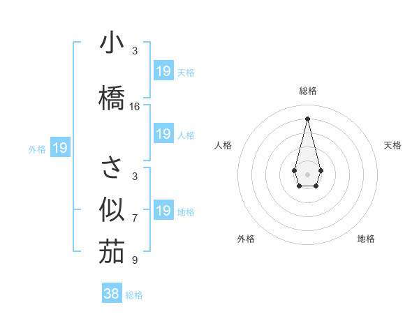 小橋 さ似茄さんの総格は38画の4点!